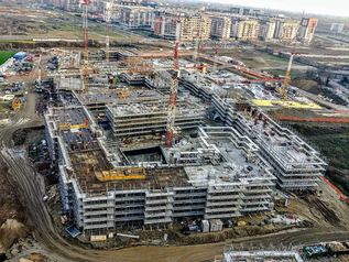 Il progetto quindi riguarda un’area edificabile molto ampia, la quale è stata suddivisa in 6 lotti: ogni lotto prevede una parte residenziale e una non residenziale. Ulma è intervenuta fornendo una gran quantità di materiale per realizzare la parte abitativa: case e palazzine aggiudicandosi tre lotti comprensivi di 3 palazzine da 15, 8 e 6 piani, aventi tutte un piano di parcheggio sotterraneo e nella parte superiore un piano di aree commerciali e spazi abitativi. Per la realizzazione delle pareti verticali e dei solai, Ulma ha fornito soluzioni standard di casseratura ad implementazione delle attrezzature già di proprietà del Cliente acquistate da Ulma e con grande esperienza di utilizzo da parte dell’utilizzatore. Ulma ha affiancato il cliente nella parte di pianifica strutturando in efficienza l’utilizzo e il noleggio del materiale necessario. In questo modo ad esempio, per la realizzazione delle due palazzine si è proceduto in contemporanea pianificando le quantità dei puntelli a sostegno del solaio in maturazione e ottimizzando la quantità di pannelli che, nell’attesa della maturazione del getto sottostante possono essere utilizzati per la casseratura già della fase successiva.