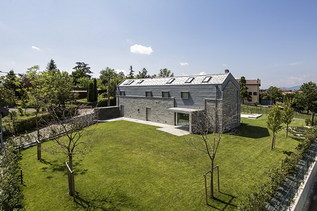 La dualità del rivestimento che accosta materiali naturali, eppure anche così diversi fra loro, come appunto la pietra e il metallo, si richiamano a vicenda in un gioco continuo di rimandi, contrapposizioni e similarità, a partire dal colore Patina Grigio del rivestimento PREFA, le forme allungate e tutte diverse e la superficie non perfettamente piana degli elementi che si lasciano accarezzare dalla luce, con effetti sempre diversi.
