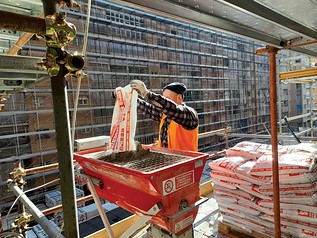 Per le lavorazioni l’impresa Secap ha utilizzato Turbomalt, l’impastatrice che assicura la migliore qualità d’impasto dei prodotti Gras Calce e un’elevata velocità di miscelazione. Semplice, veloce e silenziosa è la prima impastatrice che, oltre alla massima semplicità di utilizzo, agevola l’operatore nella produzione delle malte e dei calcestruzzi ad alta velocità, consentendo quindi di risparmiare tempo e manodopera impiegata. L’efficacia in cantiere di Turbomalt è un punto fondamentale secondo il Geom. Mauro Balan: “Le ridotte dimensioni e la presenza di ruote alla base del telaio di Tirbomalt ne agevolano il trasporto e il posizionamento anche sui ponteggi e nelle ristrutturazioni al piano. In questo caso, grazie alla loro praticità d’uso, i predosati Gras Calce forniti in confezioni da 25 kg hanno favorito la logistica di cantiere ed è stato possibile lavorare direttamente al piano o sui balconi, anche nei piani più alti degli edifici, impastando nel luogo in cui veniva posato il materiale, a favore della velocità di esecuzione”.