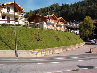Un tipico esempio di ottimizzazione degli spazi esterni è questo complesso residenziale a Cavalese (TN).