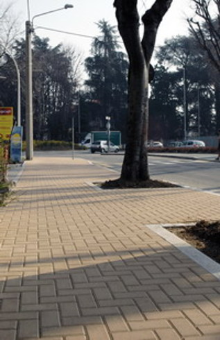 Le pavimentazioni, originariamente in asfalto, sono state sostituite con un manto in masselli autobloccanti ad azione fotocatalitica in grado di abbattere i principali inquinanti causati dall’intenso traffico della zona.