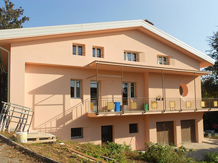 Per la coibentazione esterna a cappotto sono stati utilizzati diversi spessori di EPS: 12 e 15 cm sulle pareti, 4 cm sulle spallette di porte e finestre, sull'intradosso delle terrazze a sbalzo e delle linde dei tetti. Per questa lavorazione così decisiva per la riuscita dell'intervento di riqualificazione energetica ci si è affidati ai materiali del Sistema Cappotto FASSA. Il Sistema Cappotto FassaTherm Classic è il sistema ideale per un isolamento che interpreta gli standard più comuni, attento comunque alle esigenze dell’edificio. È stata una scelta mirata, poiché alla risaputa serietà e grande qualità dei prodotti si unisce il diffuso radicamento sul territorio della Ditta, che ha un sistema di distribuzione che permette la fornitura dei materiali in tempi strettissimi. E' stata una scelta fortunata, per l'assistenza e grande disponibilità ricevuta dall'agente di zona nel trovare soluzioni alle complesse problematiche tecniche; e per la disponibilità dell'impresa esecutrice nel mettersi in gioco nello sperimentare particolari di posa non usuali, come è stato richiesto dal progettista per ottenere specifici effetti superficiali, quali i tagli di forma geometrica complessa nello spessore del materiale isolante. Successivamente la rasatura e la finitura date hanno completato le forme volute.