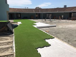 Sotto la pavimentazione antitrauma in erba sintetica della corte interna di 645 m², è stato utilizzato come strato di filtro il geotessile tessuto non tessuto POLYDREN PP 200.