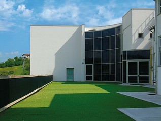 I necessari valori di isolamento acustico, in particolare per le pareti divisorie tra le aule scolastiche, sono stati invece raggiunti grazie a partizioni interne monoparete realizzate con Lecablocco Fonoisolante (nella versione 30x20x25 cm): intonacata su entrambi i lati, la parere così realizzata in spessore totale 30 cm conferisce un elevato valore di fonoisolamento con un indice di abbattimento acustico Rw di 56,9 dB.