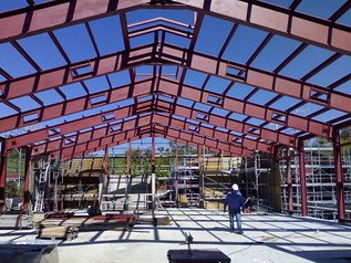 Inizialmente il progetto architettonico prevedeva che tetto, murature e insieme di pluviali fossero realizzati con sistemi tradizionali; poi, in fase esecutiva, per semplificare e velocizzare i tempi di consegna si è fatto largo uso di tecnologie costruttive a secco che hanno permesso una perfetta posa in opera dei rivestimenti modulari. In questo caso il sistema di rivestimento ventilato in laterizio è stato utilizzato come pelle esterna per il principale corpo di fabbrica che costituisce il complesso educativo, e la particolarità della realizzazione risiede nell’omogeneità di questa speciale epidermide con modulo di dimensioni 500x250 mm che, come un’enorme manto rosso, avvolge e protegge non solo i quattro lati dell’edificio ma, cosa abbastanza inusuale, si chiude nel quinto elemento: il tetto. Il cotto non ha nessuna funzione di tenuta all’acqua bensì solo di creare un’intercapedine ventilata che renda stabile la temperatura tra l’esterno e l’isolamento. Abaco Solutions, azienda di Spresiano (TV) da anni specializzata nel settore delle facciate ventilate e dei complementi esterni connessi, oltre alla progettazione si è occupata anche della posa in opera dell’intero sistema, utilizzando moduli in cotto della SanMarco-Terreal Italia di Valenza (AL), leader mondiale nel settore del laterizio e da sempre suo valido partner. Va sottolineato che l’estrema precisione nella progettazione dei pezzi, richiesta da una rigorosa modularità essenziale per l’estetica del fabbricato, ha trovato riscontro in fase costruttiva, dove tutto, dalla carpenteria principale ai pacchetti isolanti, agli elementi di finitura, combaciava al millimetro e non ha richiesto antiestetici tagli. Terminata la posa della carpenteria è intervenuta la squadra di Abaco Solutions, che ha installato il sistema non solo in facciata ma anche in copertura, dopo aver montato anche i vari elementi strutturali metallici del tetto, già predisposti di appositi fissaggi per sostenere il manto ventilato.