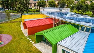 Colorata e luminosa, la nuova scuola materna di Bagnolo Mella (BS), è stata progettata dall’architetto Simone Firmo per essere luogo adatto ai bambini più piccoli, grazie anche all'uso delle lastre Alugraf 600 di Alubel.