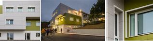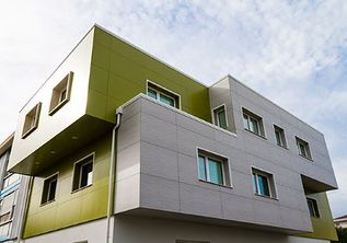 In particolare in questo caso la soluzione REDAir prevedeva l'utilizzo del pannello isolante in lana di roccia Fixrock 033 VS di spessore 60 mm. Il materiale coibente è stato abbinato al pannello di rivestimento ROCKPANEL Colours Bright, trattato con l'applicazione di extra ProtectPlus, e al pannello ROCKPANEL Woods Marble Oak. Il tutto ha consentito di ottenere sulla facciata una finitura estetica di forte impatto visivo, con l'alternanza di un verde acceso abbinato alle tonalità più neutre del grigio.