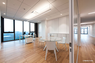In tale contesto, dove efficienza e rispetto dell’ambiente sono intimamente connessi, i controsoffitti in fibra minerale Ultima+ ad incasso di Armstrong Building Products assicurano prestazioni eccellenti tanto dal punto di vista estetico quanto funzionale: i pannelli, di dimensioni 60x120cm arredano circa 3000 m² e, alternati con fasce di cartongesso, sono completati con luci a sospensione e sistemi di areazione. Essendo ispezionabili, i soffitti garantiscono, come ulteriore plus, un accesso facilitato agli impianti antincendio e di areazione.