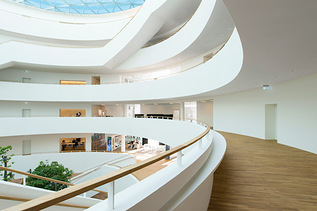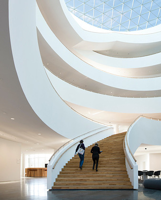 L’azienda farmaceutica danese Novo Nordisk voleva che la sua nuova sede centrale a Bagsværd, a nord di Copenaghen, fosse un ambiente luminoso open space, e un forte rimando al DNA aziendale. Lo studio Henning Larsen Architects ha vinto il progetto con l’elegante proposta per un edificio circolare, dal design organico, ispirato alla struttura e alla forma a spirale circolare delle molecole di insulina, che sono alla base della gamma dei prodotti dell’azienda. I progettisti hanno inoltre inserito chiari riferimenti architettonici alla tradizione del design scandinavo e all'architetto danese Arne Jacobsen che, oltre alle note sedie Egg e Swan, ha realizzato progetti anche per Novo Nordisk.