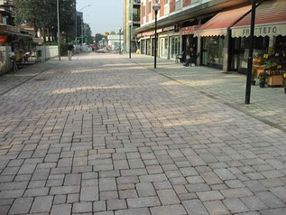 Ferrari BK è intervenuta direttamente nella fornitura e posa delle pavimentazioni realizzando quindi tutte le opere di abbattimento della barriere architettoniche e di "traffic calming" previste nel progetto esecutivo. In particolare sono stati utilizzati (per il solo lotto 1 di intervento) i seguenti prodotti: