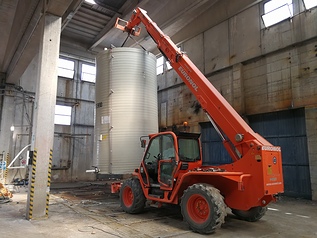 L’eterogeneità e complessità dell’intervento ha visto così interagire una piattaforma elettrica articolata Haulotte HA15IP – una 15 m compatta in grado di accedere e muoversi negli spazi più stretti - un sollevatore telescopico frontale Merlo P40.16 K, equipaggiato con forche, gancio, cesta e benna; un escavatore cingolato Yanmar SV100 e un Hitachi ZX210-5 monolitico, entrambi con martello demolitore idraulico RX22. Un mix di precisione e forza, come nel caso del trasporto dei serbatoi all’esterno, dove lo Yanmar SV100 e il Merlo P40.16 K, hanno lavorato congiuntamente.
