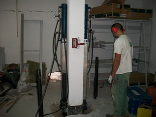 Esaminata la situazione nel complesso si è optato, in accordo con i tecnici di fiducia del Committente, per la realizzazione di “micropali” speciali di tipo Geoup® mediante l’utilizzo di martinetti facilmente trasportabili anche all’interno ed in spazi ridotti.