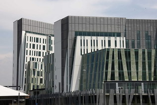 Il cantiere Torre Uffici di Assago è in piena evoluzione. Accanto alle quattro torri per uffici sono sorti: il multisala, un villaggio fitness e il bar libreria. Saranno ultimati tra alcuni mesi: l’albergo, le palazzine residenziali, le nuovi torri e il quarto palazzo per uffici. Anche in questo edificio l’architetto Van Egeraat ha giocato con l’effetto di finiture di diversi materiali da costruzione, utilizzandoli sul tamponamento a secco e alternandoli con grandi porzioni di serramenti verticali o inclinati con le vetrate in parte serigrafate.