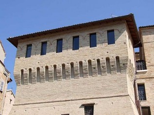 Allo stesso tempo si è voluto rendere esplicito il riferimento alla torre-casa evidenziando la sovrapposizione avvenuta nel tempo; in accordo con la Soprintendenza delle Marche, si sono inserite le finestre all’interno della merlatura conformandole in modo da non avere i montanti a vista, si è smontata sia la copertura (fatiscente) che la muratura sommitale in luogo della quale è stata realizzata una nuova muratura in laterizio. La scarpa del torrione è stata liberata da una scala esterna in cemento che è stata sostituita con una in ferro e laterizio.