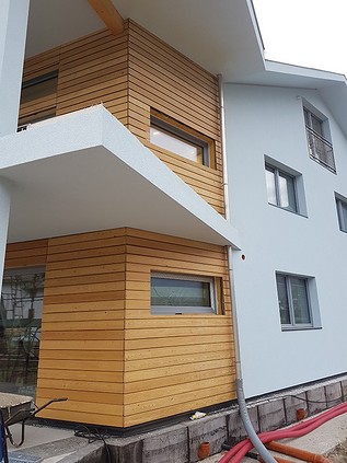 Le facciate ventilate con finitura ad intonaco e doghe in larice
